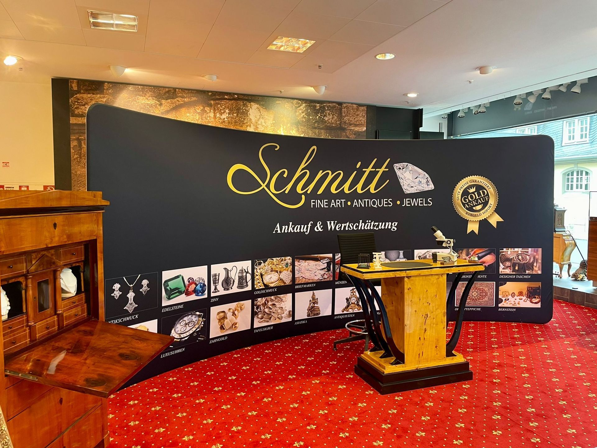 Neben Edelmetallen sind wir auf den Ankauf von erlesenen Antiquitäten und Kunstobjekten spezialisiert. Ob Schmuck, Münzen, Asiatika oder Orientteppiche – wir bewerten Ihre Stücke seriös und fair.